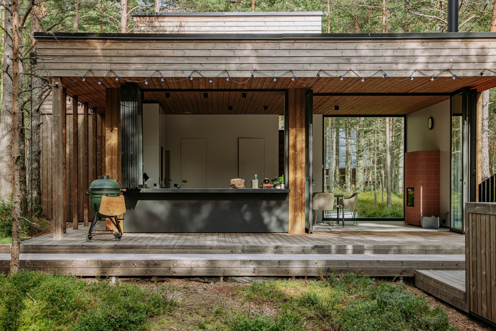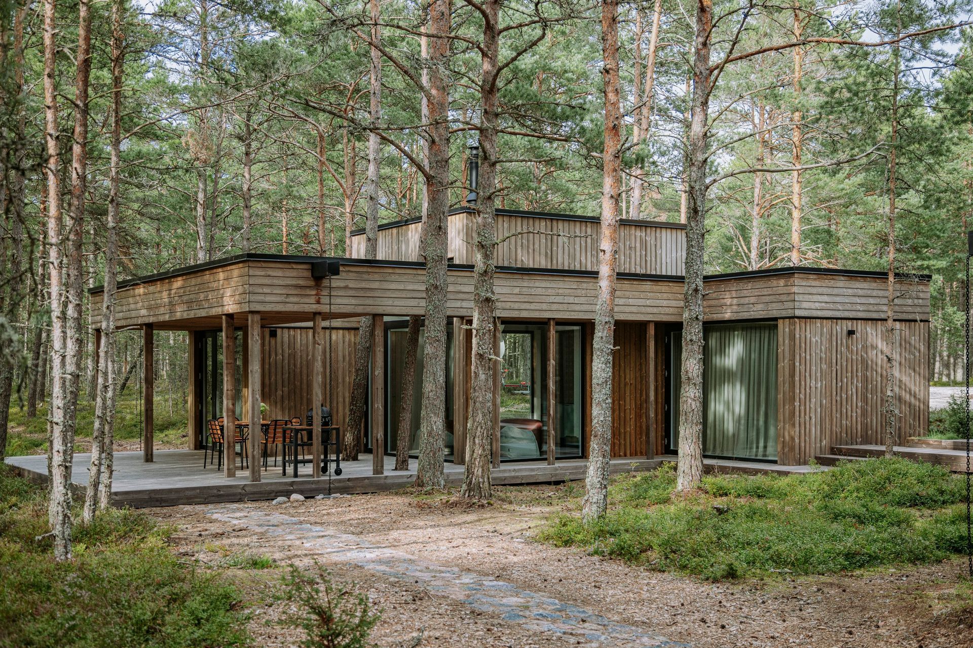 Maast laeni aknad avavad vaated ümbritsevale männimetsale, tuues looduse loomulikult siseruumi.